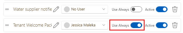 If you want a task to always automatically ne added to new lease task lists, click Use Always. This will ensure the task is always automatically added to new leases