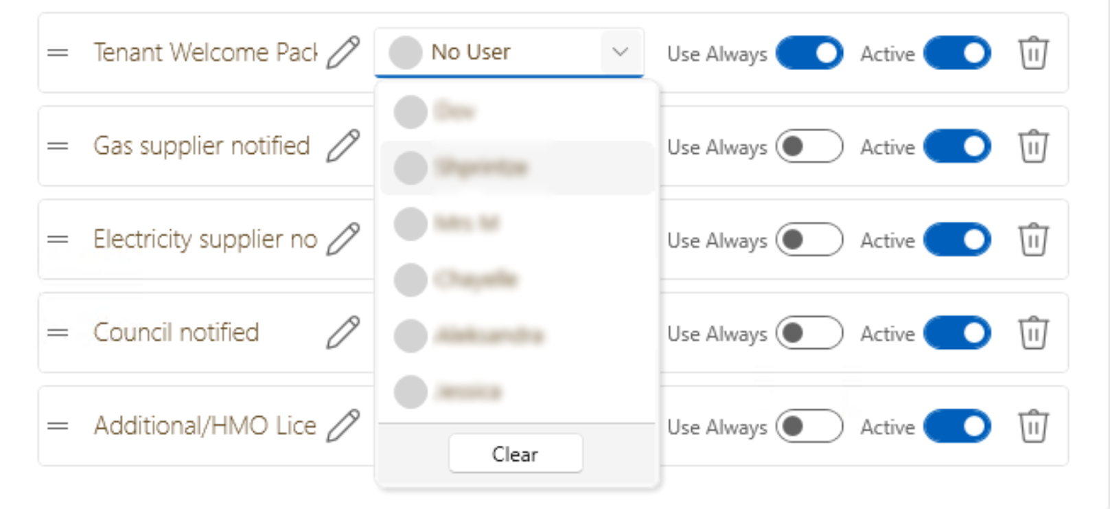 • Once checked, you can select default tasks you want us to automatically add to new tenancies.