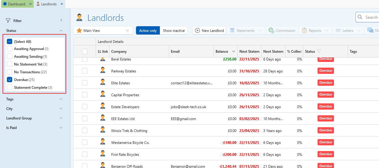 This will open the View Landlords window, automatically filtered to the relevant landlords.
