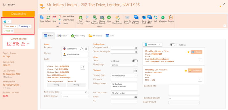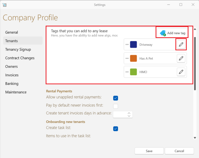 Tags provide you with a flexible way to classify and search for specific groups of leases. You can customize and manage tags directly from the lease window or from the settings window.