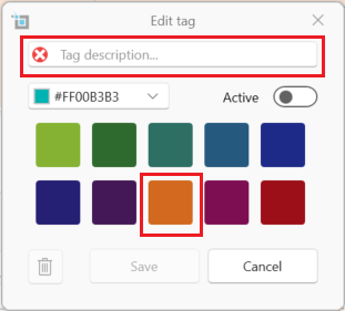 - Edit the name or colour of a tag by clicking on the edit button by the name of the tag - the edit tag box as above will show up and you can make the necessary changes.